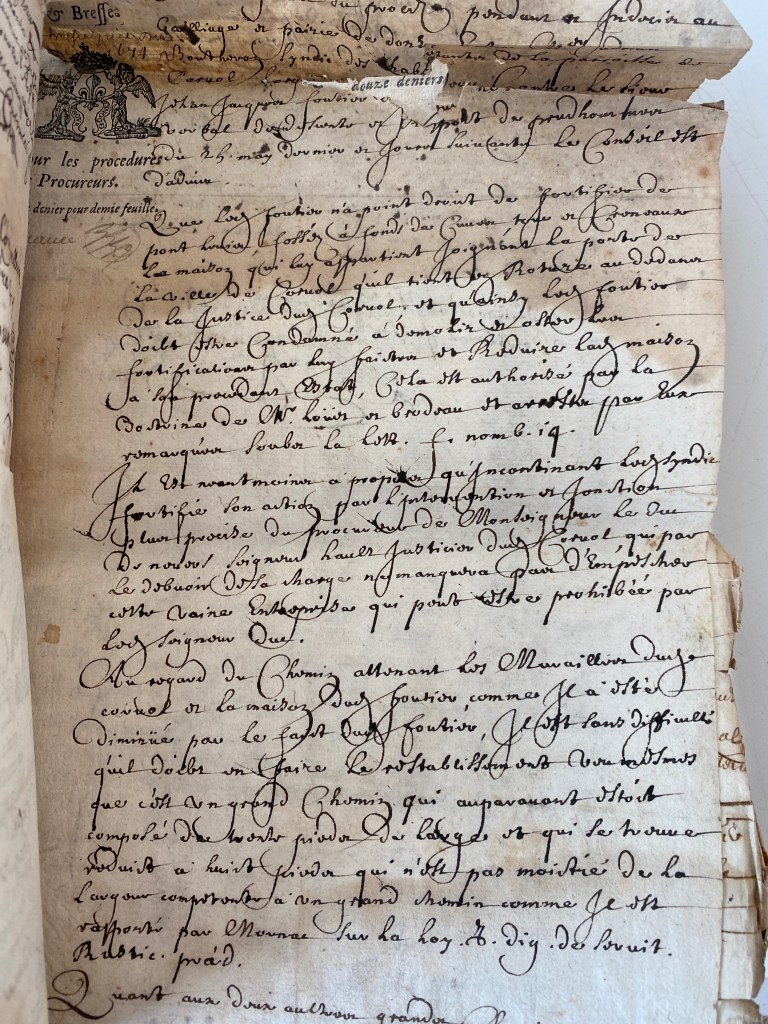 Another document refers to a certain Jean-Jacques Foutier. Was this François Foutier’s son or heir? In any case, Jean-Jacques also seems to have played rough and hard with the local commoners, as the proceedings of his court cases show. Further investigation of these precious archival boxes will assuredly reveal more surprises.
