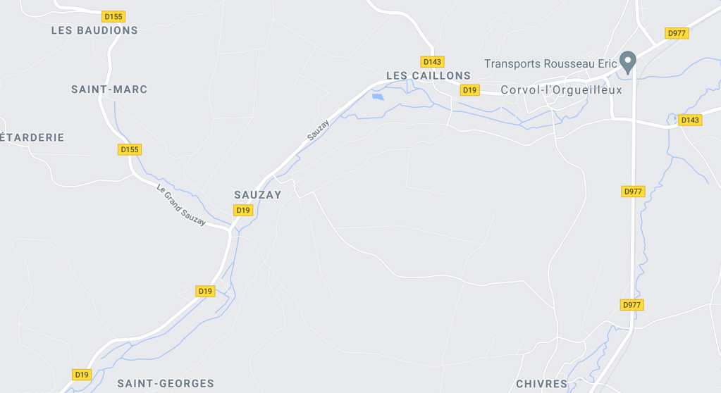On a hill above the Sauzay river, around three kilometres from Corvol, is the hamlet of Saint-Georges, with its ancient chapel dedicated to Saints Cosma and Damian. The 14th century chapel is located on what was the main road from Varzy to Entrains-sur-Nohain, and provided a resting place for travellers.