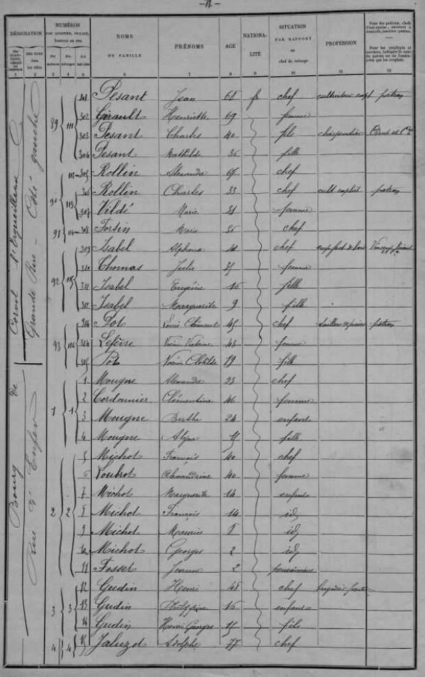 Census of the population (1901): Inhabitants of Rue d’Enfer, location of the Vieux Château (No. 1)