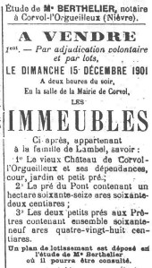 The Château and the related properties were sold in 1901 by Marquess Anne Marie Michèle de Neuchèze, widow of Viscount de Lambel, and daughter of the Marquis de Neuchèze, and the estate was dispersed.